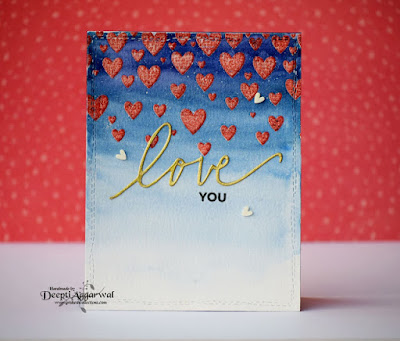 And finally, we have this card by Deepti...beautiful background, LOVE those hearts, and the sentiment is perfection!