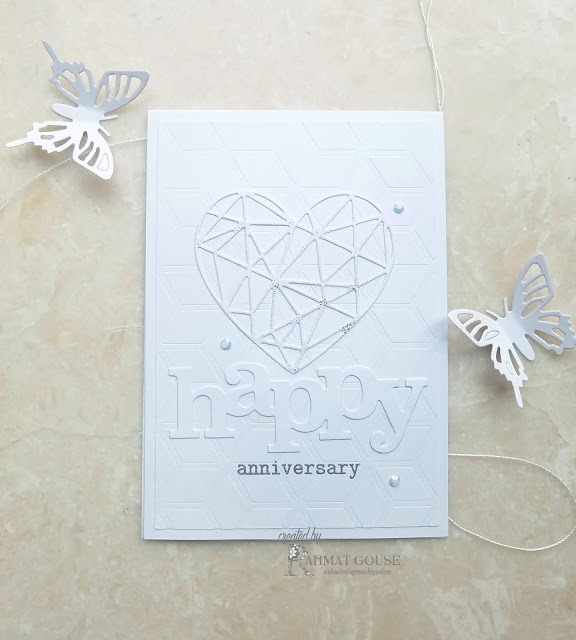 Next up, an amazing use of super bright and soft neutrals - mostly white by Rahmat! It is hard to make a card with this much white, but she nailed it with all those lovely layers and textures - bravo!!!